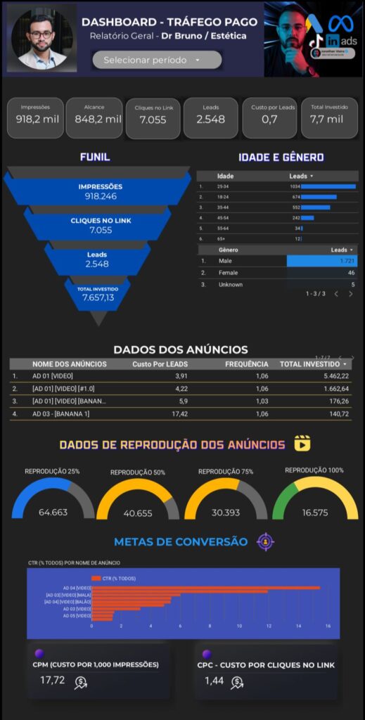 Meta Ads (Instagram e facebook), google Ads (Topo de pesquisas do google, youtube, sites etc),Tiktok Ads (Tiktok)